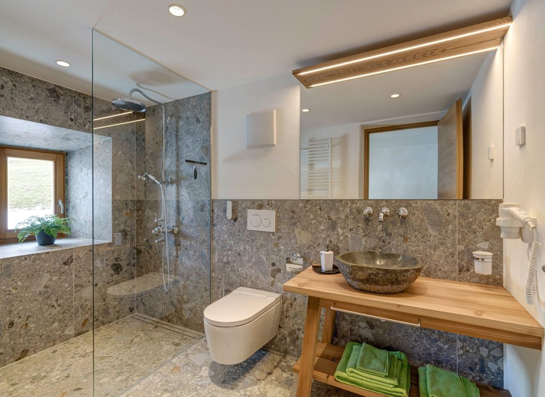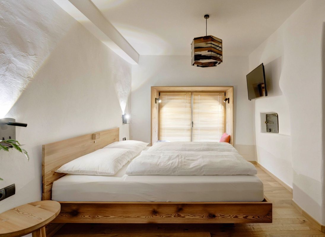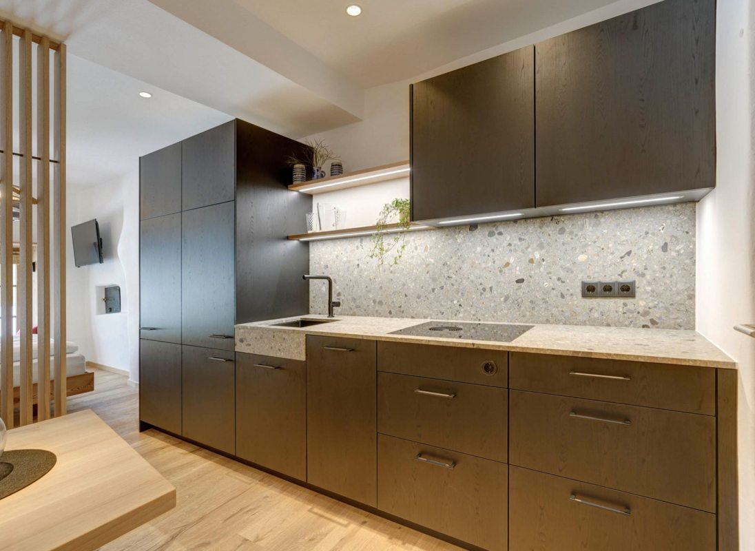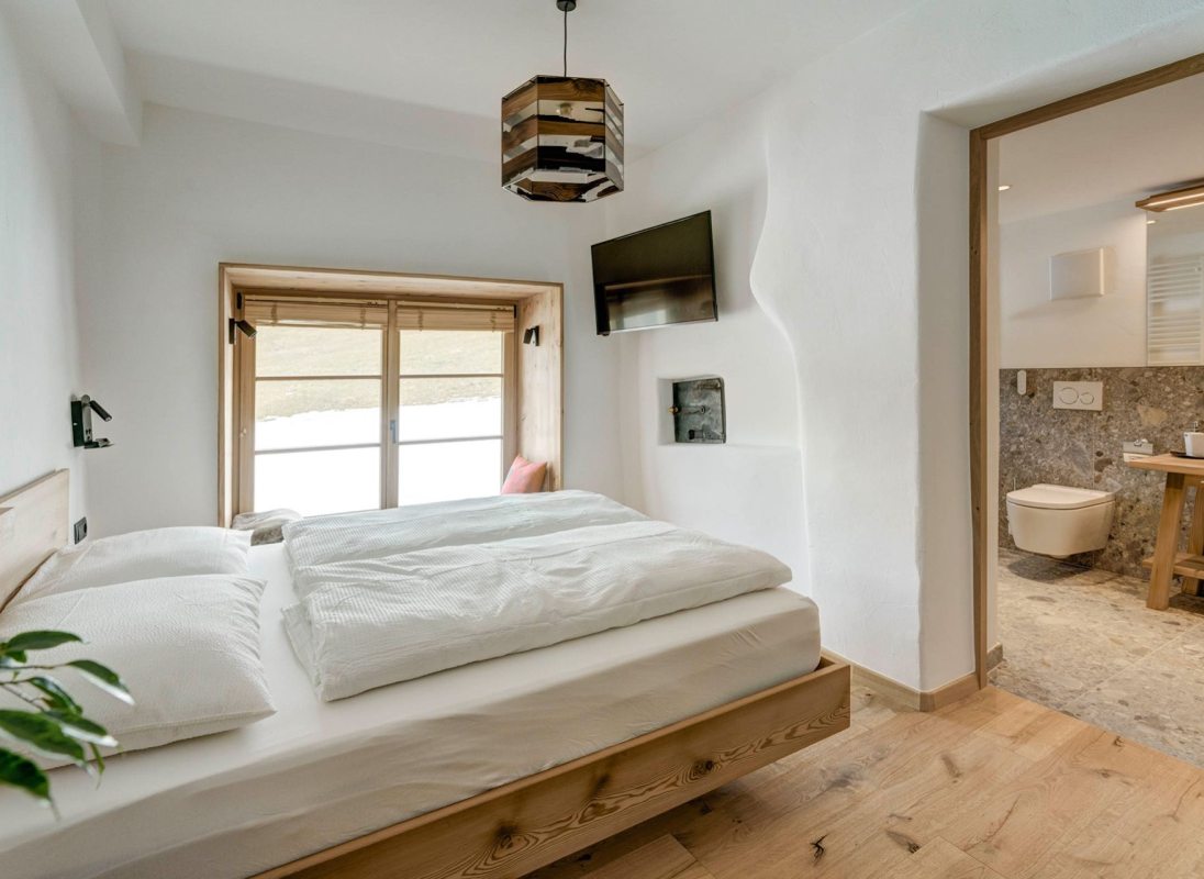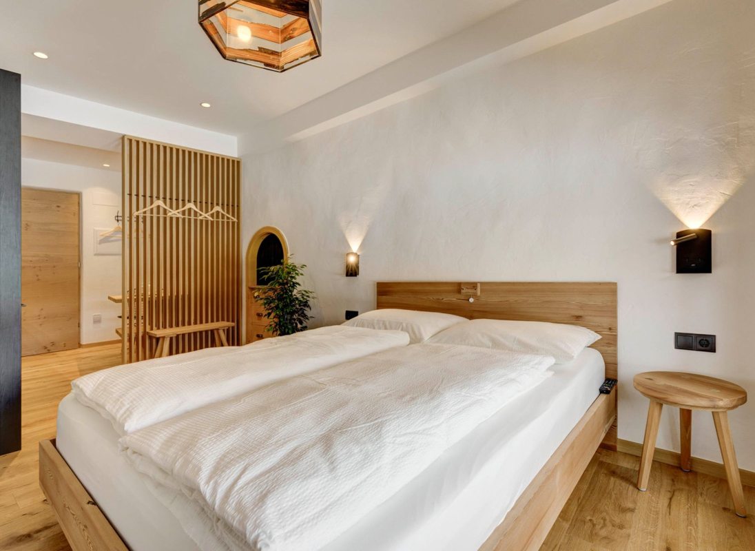 The 32 sqm apartment "Labe" with bedroom, kitchen-living room and bathroom enchants with its fresh and modern ambience and warm coziness. The quiet location with a view of the greenery provides the necessary relaxation. Hiking on the Alpe di Siusi during the day and simply relaxing in the evening.